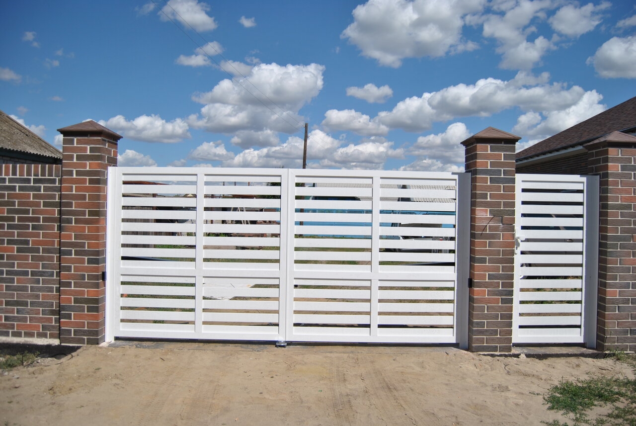Въездные распашные ворота 3700х1985 и калитка 900х1985 RAL9016 белые